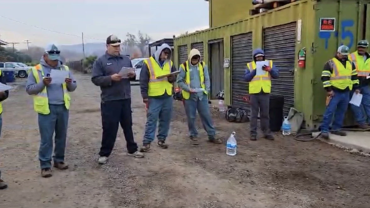 Documented tailgate safety meeting reinforcing job hazard analysis, PPE requirements, and operational risk controls prior to field deployment.