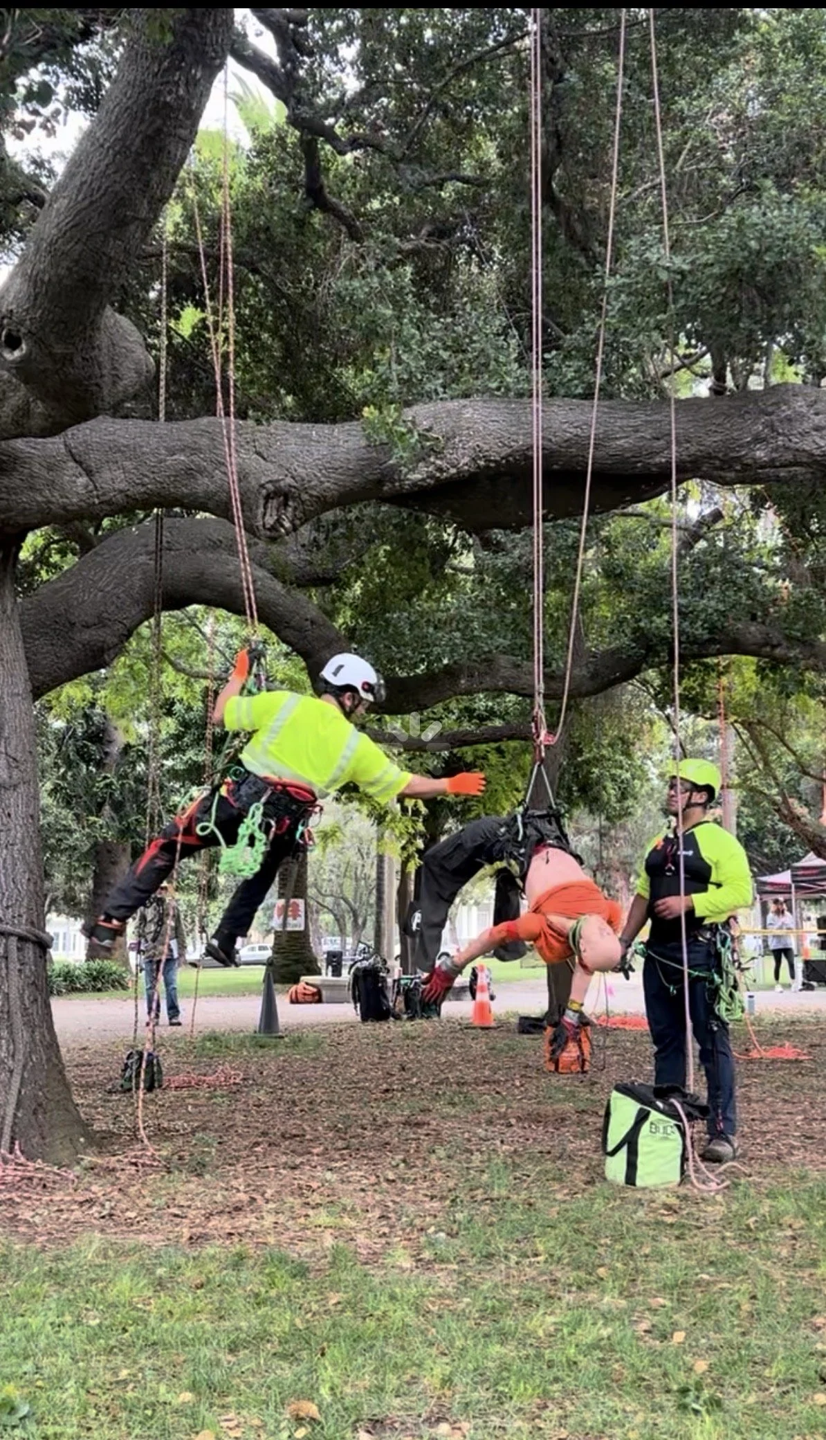 All climbing activities are executed under structured safety protocols, equipment inspection procedures, and crew-level coordination to ensure controlled, hazard-mitigated operations in public environments.